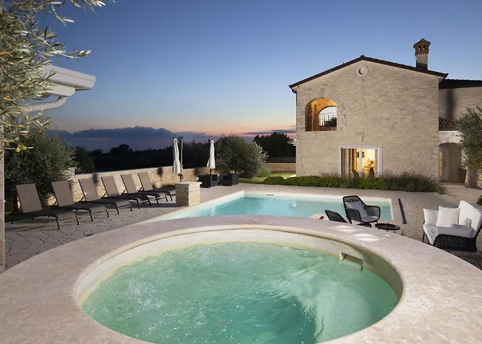 Nestled 3.4 km from Monkodonja Hill Fort, Villa Piccolo Paradiso With Heated Pool, Jacuzzi & Sauna Rovinjsko Selo is boasting a hot tub and spa therapy for guests' enjoyment.